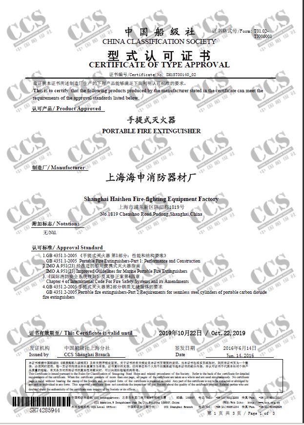 恭喜南京英格索蘭壓縮機獲得中國船級社CCS型式認可